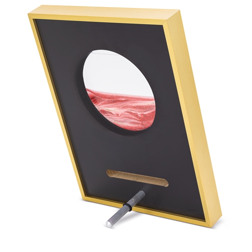 Troféu com estrutura metálica e efeito de areia em movimento. Elegante, dinâmico e único.Cada peça vem numa caixa individual (21 x 26 x 3 cm).