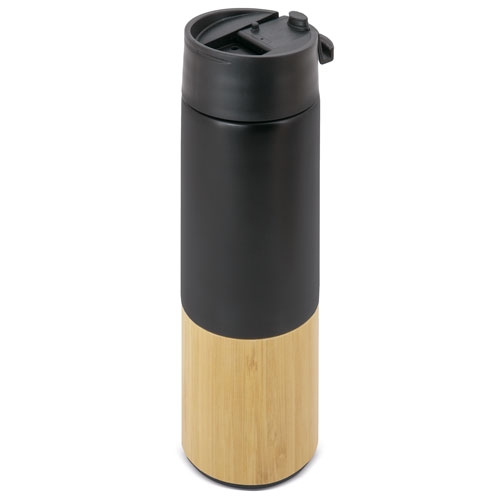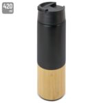 Capacidade 420 ml, realizado em bambú e metal inoxidável.